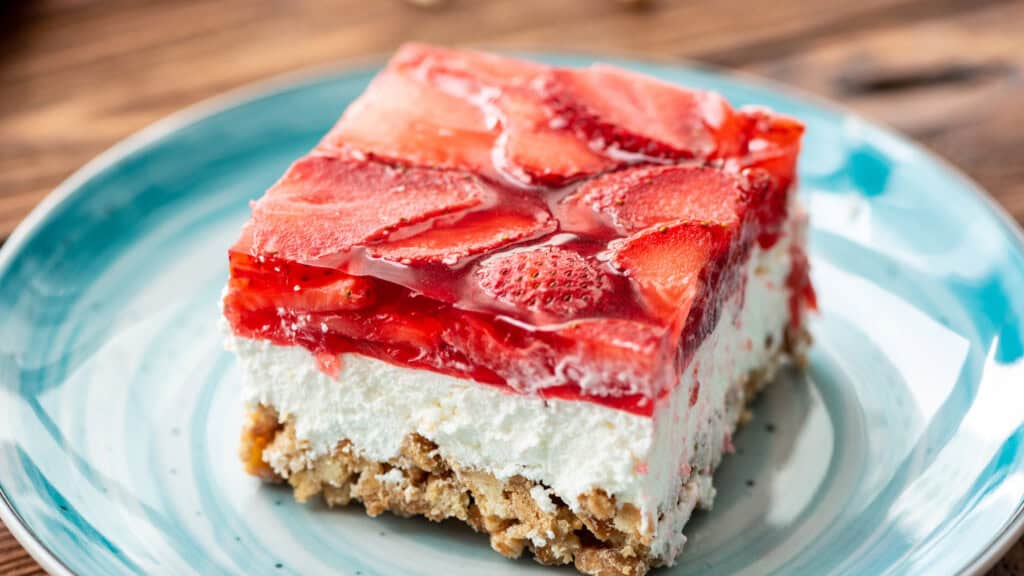 Strawberry pretzel salad is an old-fashioned treat everyone will enjoy! A perfect blend of salty and sweet. It features a buttery pretzel crust, followed by a light cream cheese layer and a mouthwatering strawberry Jell-O topping filled with more strawberries! This pretzel salad is a Southern, no-bake dessert that has been popular at potlucks, picnics, gatherings, and more!