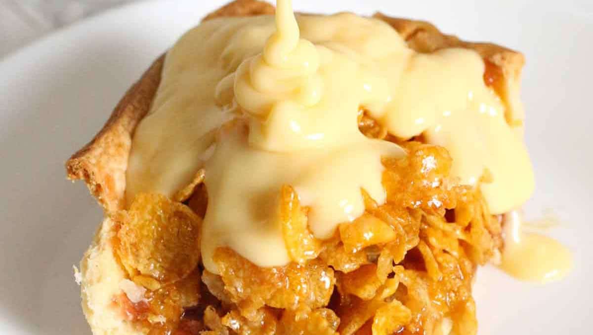 This mouthwatering apple crumble pie will knock the socks off of your guests this holiday season! Made with fresh apples, sweet apple crumble, and a flaky, buttery pie crust, it will be impossible not to return for seconds. Serve it with a bowl of vanilla ice cream or a dollop of whipped cream for the ultimate dessert!