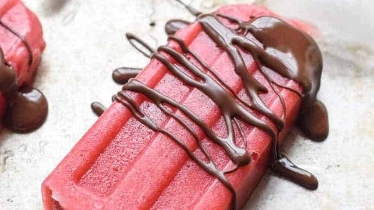These Strawberry Popsicles with Chocolate Drizzle are a huge hit when the weather gets hot. They are made with fresh strawberries, maple syrup, and coconut milk.